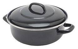 De zwarte BK Fortalit braadpan heeft een diameter van 26 cm. De pan heeft een inhoud van 2,9 liter en is gemaakt van geëmailleerd plaatstaal. Gebruik de braad- en stoofpan voor het bereiden van braadstukken en stoofpotten.