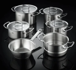 Het Franse topmerk Cristel ontwikkelde de lijn Castel’Pro voor gebruik in de professionele keuken zowel als thuis. Deze pannen zijn opgebouwd uit vijf verschillende lagen. Aan de buitenzijde zit een laag 18/0 edelstaal, gevolgd door een laag aluminium, een laag versterkt aluminium, een laag aluminium en aan de binnenzijde een laag 18/10 edelstaal. De pan heeft een dichtgelegde gietrand, waardoor de pan vaatwasmachinebestendig is. De gegoten roestvrijstalen grepen en stelen zitten met roestvrijstalen nagels aan de pan vast en geleiden weinig warmte. Door het gebruik van 18/0 staal zijn Castel’Pro pannen zowel geschikt voor alle warmtebronnen en om in de oven te gebruiken.