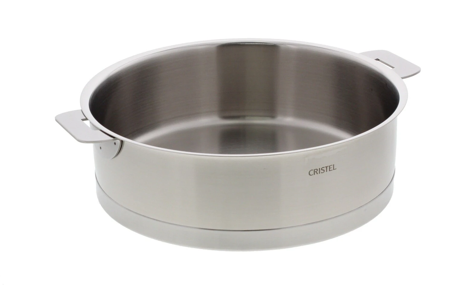 De pannen van de serie Strate van het Franse merk Cristel zijn voorzien van een extra dikke bodem. In de bodem zit een aluminium plaat die de warmte gelijkmatig over de bodem verdeelt. Uniek aan deze serie is dat de dikke aluminiumlaag in een L-vorm de hele bodem van de pan omkapselt. Buiten deze laag heeft de pan een roestvrijstalen bodem die voor goede verwarming op een inductiekookplaat zorgt. Een deel van de pannen en deksels heeft vaste grepen en een deel heeft losse grepen die van de pan gehaald kunnen worden zodat deze compacter wordt.