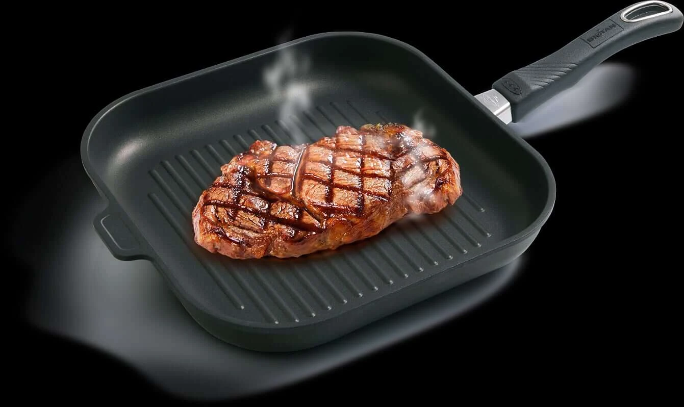 Geniet dagelijks van de bewezen kwaliteit van Gastrolux met de Gastrolux Expert grillpan. De pan is vervaardigd van vormvast aluminium en geschikt voor alle warmtebronnen, inclusief inductie en ovenbestendig (tot 260°C). Het aluminium wordt verhit tot 620°C en vloeibaar gegoten in een mal. Het resultaat wordt onder zeer hoge druk geperst tot de juiste vorm, waarbij de kenmerkende honingraatstructuur aan de bodem wordt gegeven. Het gebruikte materiaal bereikt dankzij de perfecte warmtegeleiding zeer snel en gemakkelijk een hoge temperatuur. Hiermee bespaart u tijd, energie en geld.