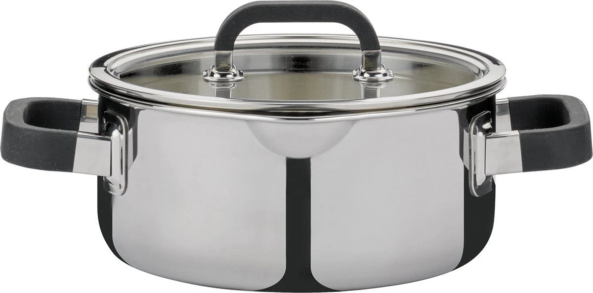 De Spring Fusion2+ kookpan is gemaakt van roestvrijstaal met siliconen handgrepen en een deksel van glas. De pan heeft een diameter van 16 cm, een hoogte van 7,5 cm en een inhoud van 1,4 liter. De isolerende grepen zorgen ervoor dat u de pan zonder moeite kan vast pakken. De pan is geschikt voor alle warmtebronnen, inclusief inductie.